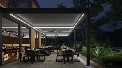 The bioclimatic louvred pergola, a pinnacle of eco-conscious innovation, seamlessly combines minimalist modernity with eloquent design. Balancing aesthetic charm, stability, and exceptional shading capabilities, it elevates outdoor spaces, harmonizing with courtyards, terraces, poolsides, and upscale dining venues. A chic statement for contemporary residences, this pergola embodies style and functionality.